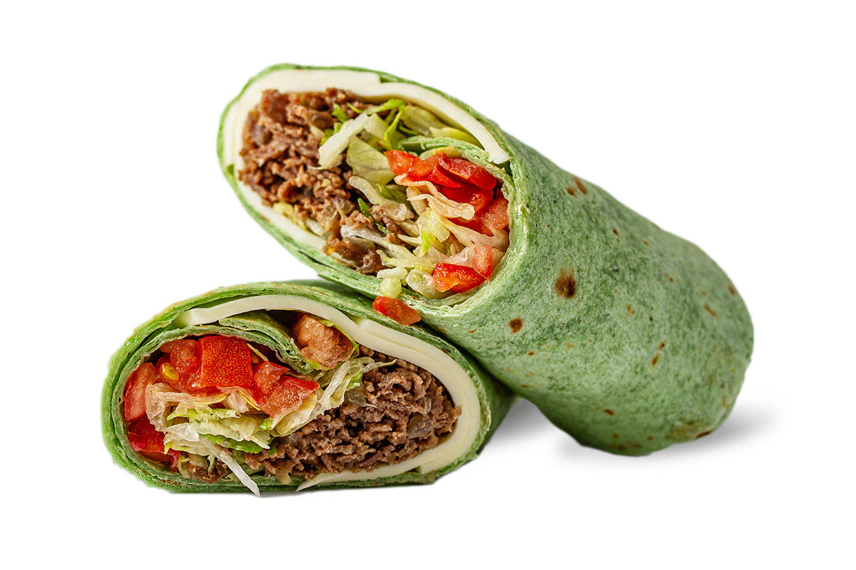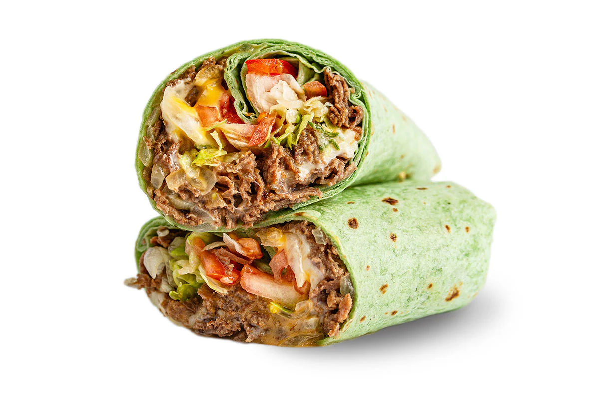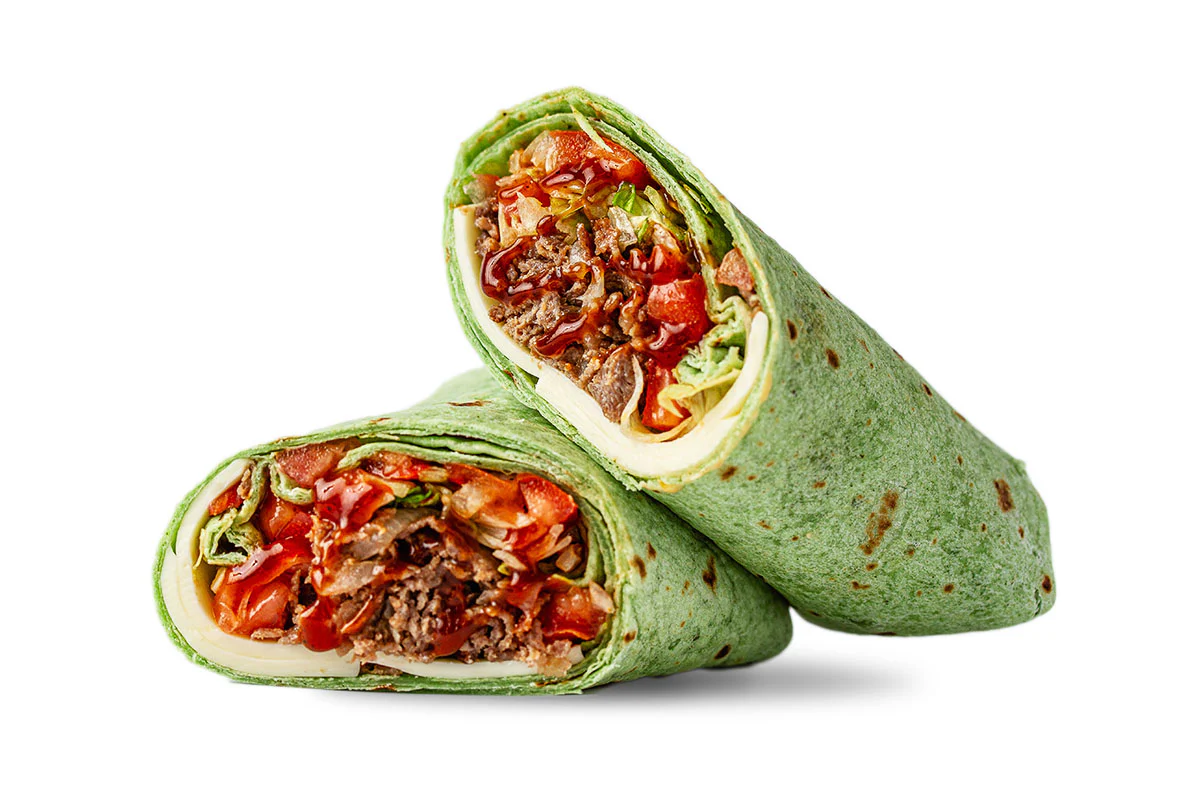 Grilled 100% USDA Choice beef with melted Pepper Jack cheese coated in a spicy hot sauce and topped in buttermilk ranch dressing