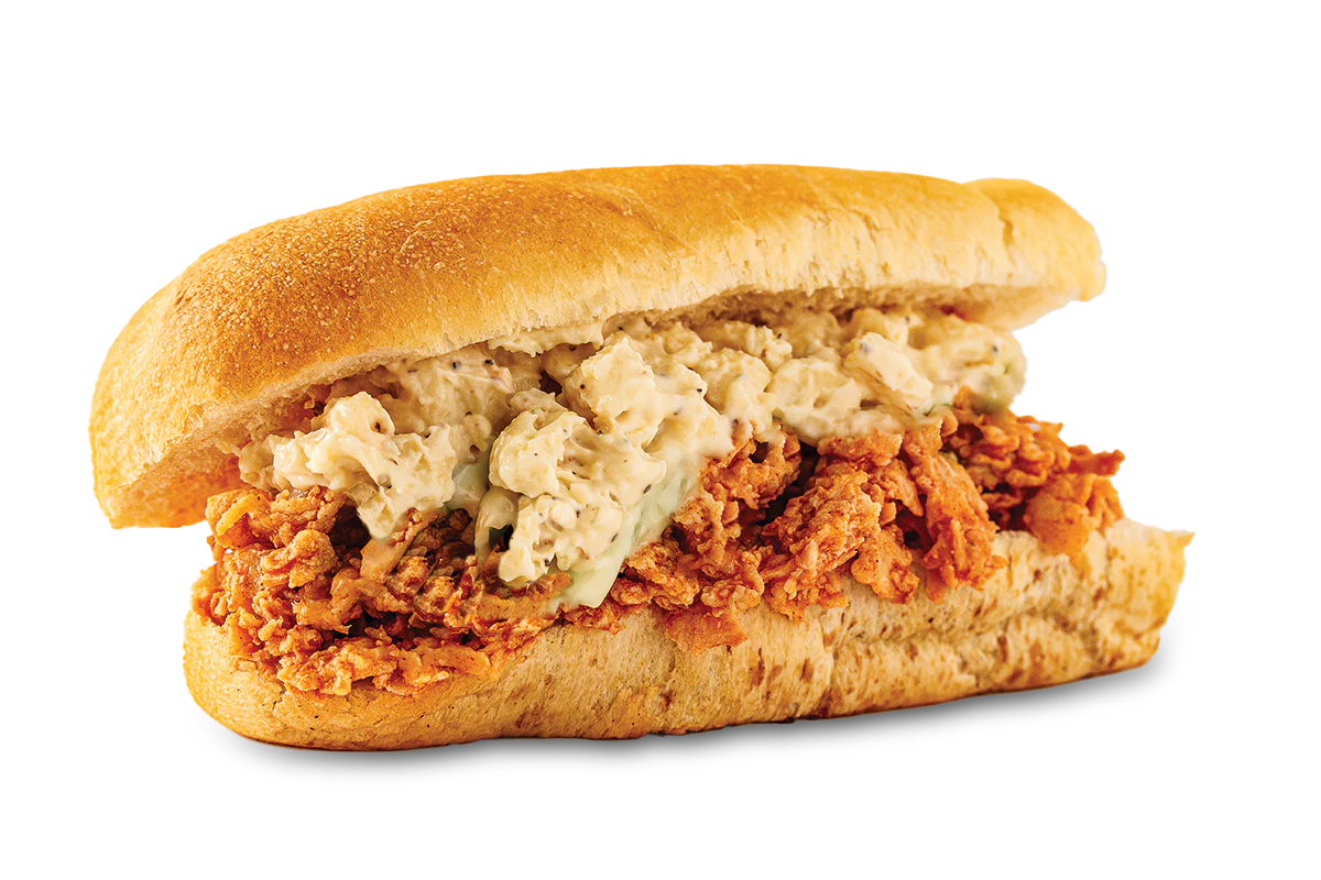 All-White meat Chicken Breast with melted Pepper Jack cheese coated in a spicy hot sauce and topped in buttermilk ranch dressing