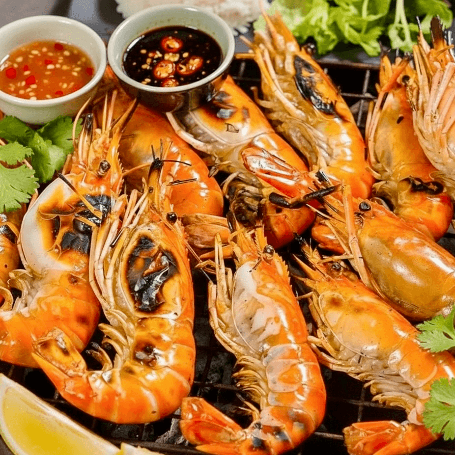 Grilled Prawns 1 lbs. served spicy lime sauce, Bangbang Salad and Steamed Jasmine rice