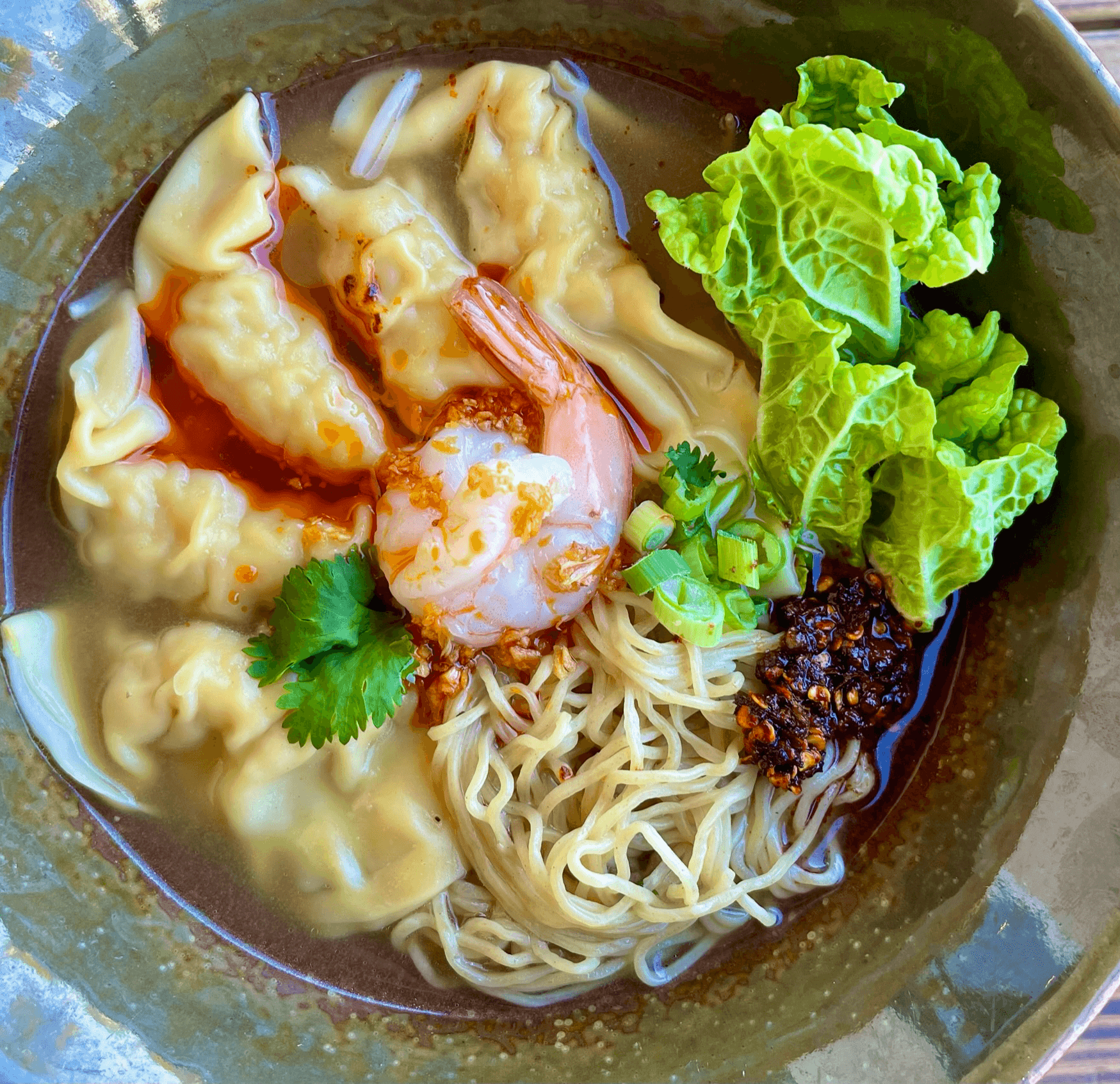 Steamed ramen noodle tossed in homemade spicy chili garlic oil.