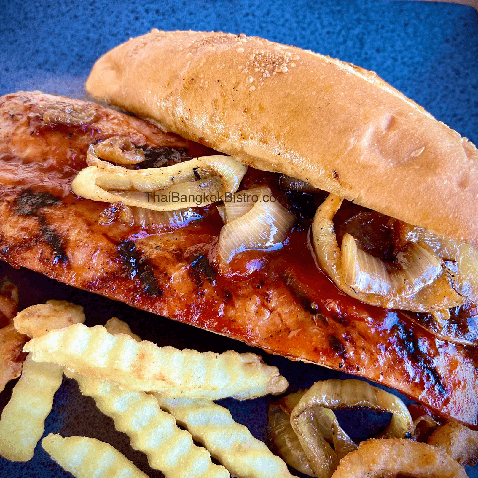 Crispy bone-in whole tilapia topped with homemade sweet chilies sauce served with steamed jasmine rice.