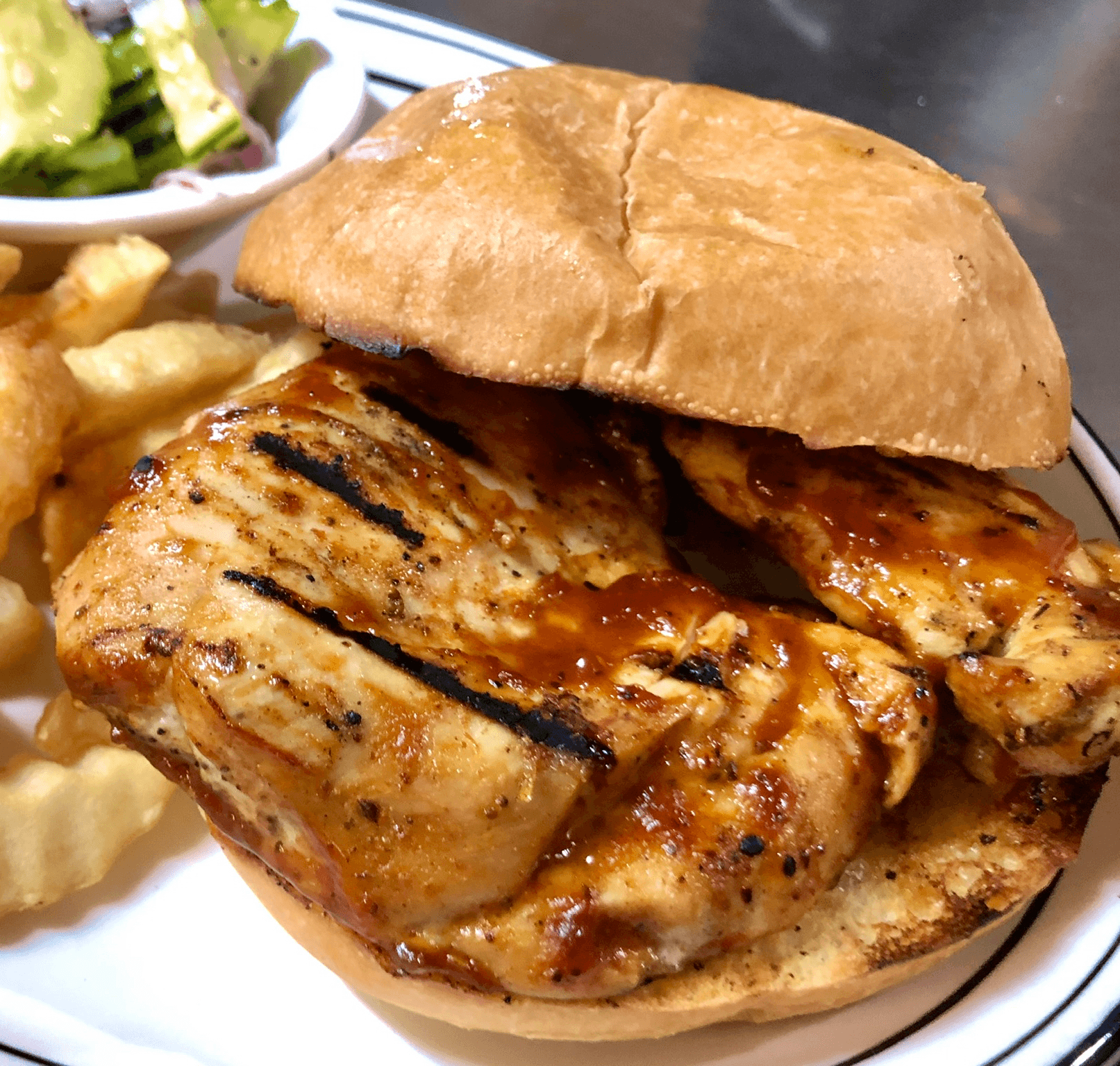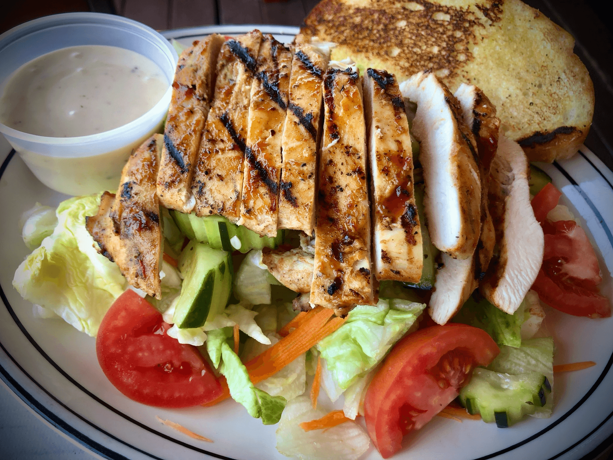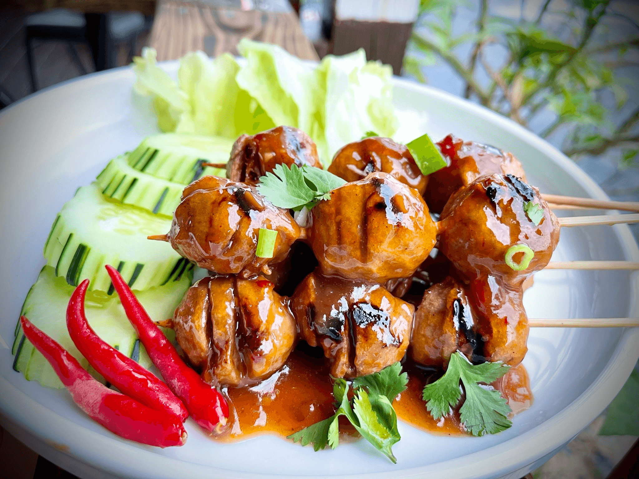 24 hour marinade grilled pork (12 oz.) served with salad, steamed jasmine rice and spicy tamarind or your choice of homemade sauces.