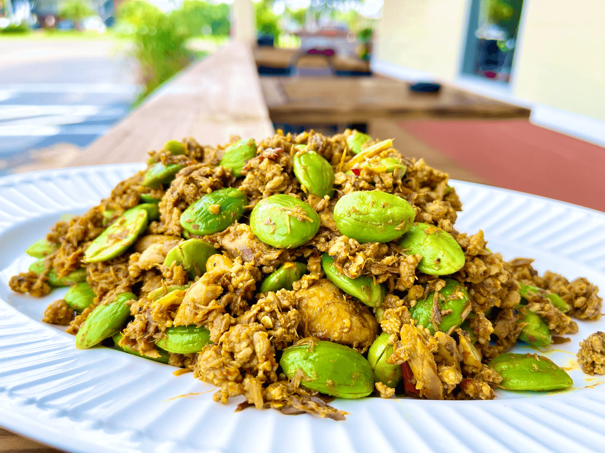 Steamed jasmine rice topped with classic Thai style omelette served with housemade sriracha hot sauce.