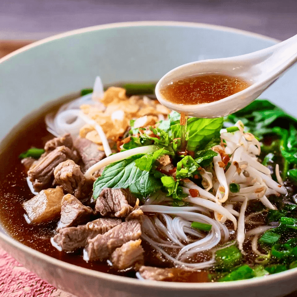 Lemongrass soup base with cream, premium quality reman noodle, bean sprouts, spinach’s, spring onion and cilantro with your choice of protein.