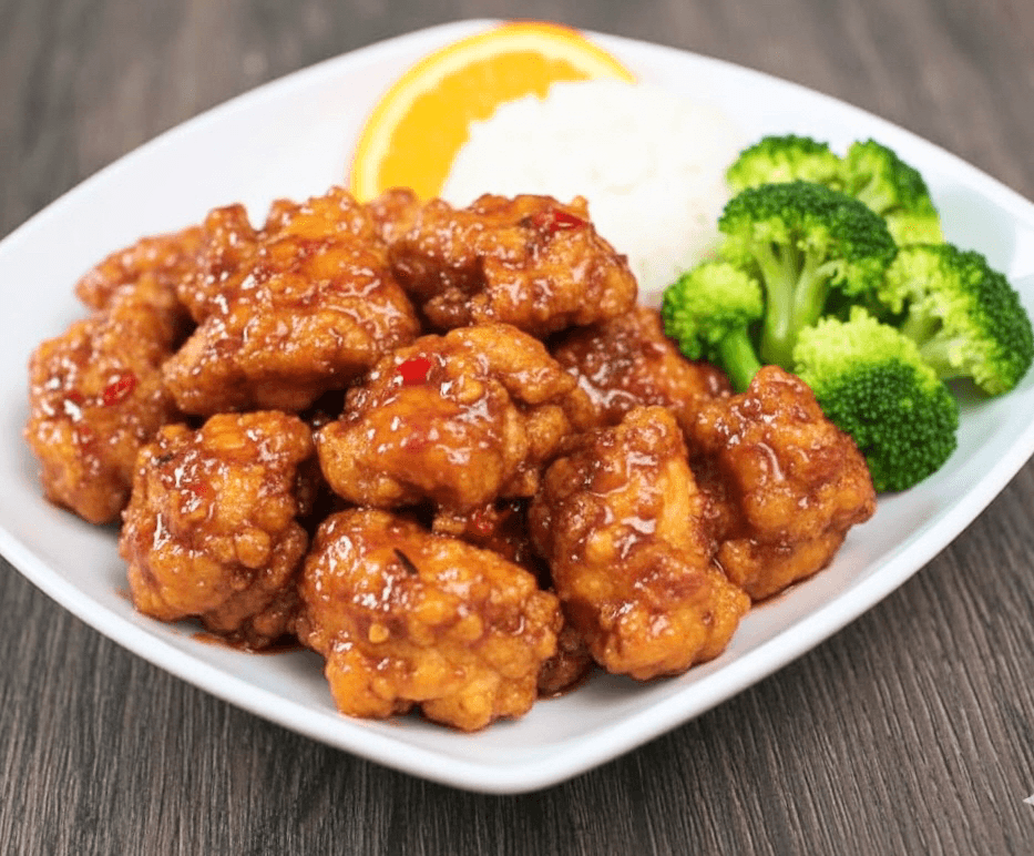 Crispy bite-size chicken tossed in our house-made sweet citrus orange sauce, served with steamed broccoli and fragrant jasmine rice